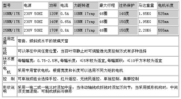 电 机:FSS管状电机,根据宽度和长度可以选用不同力矩的电机